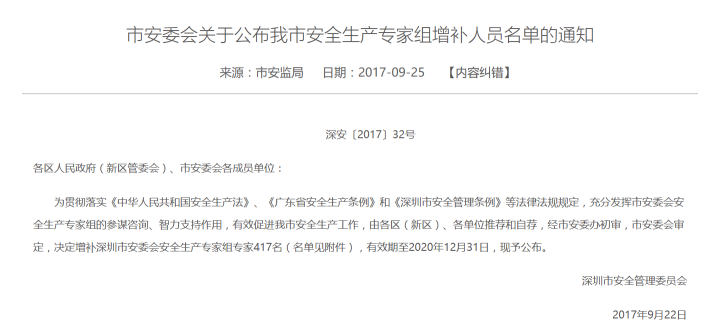 为有效实施“科技兴安”“人才强安”战略,提高深圳市安全生产科技和人才支撑能力,保障城市安全运行,深圳市安委会对深圳市安委会安全生产专家库人员进行增补。在本次专家库...